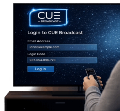 On a Smart TV: Open your device’s app store, search for “CUE Broadcast,” and install the app. Go to Step 3