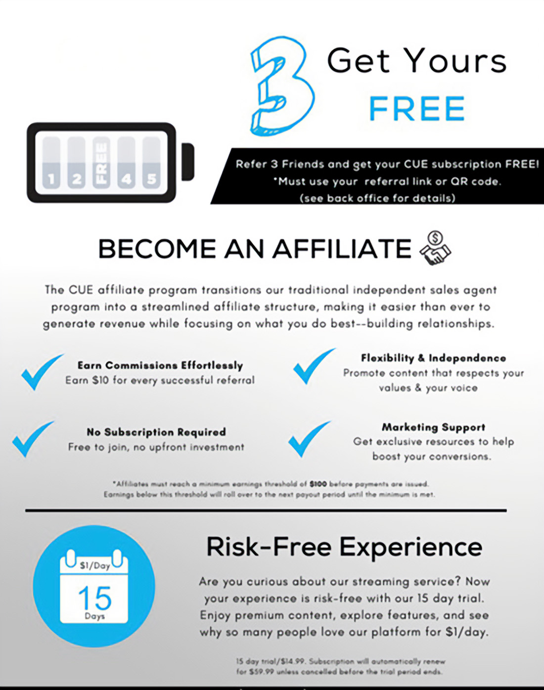 Our new CUE 3, get yours FREE program lets you earn your CUE