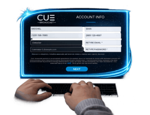 Open the CUE Broadcast app (or web player) and log in using the email and password you created during enrollment. You’re ready to start streaming!
